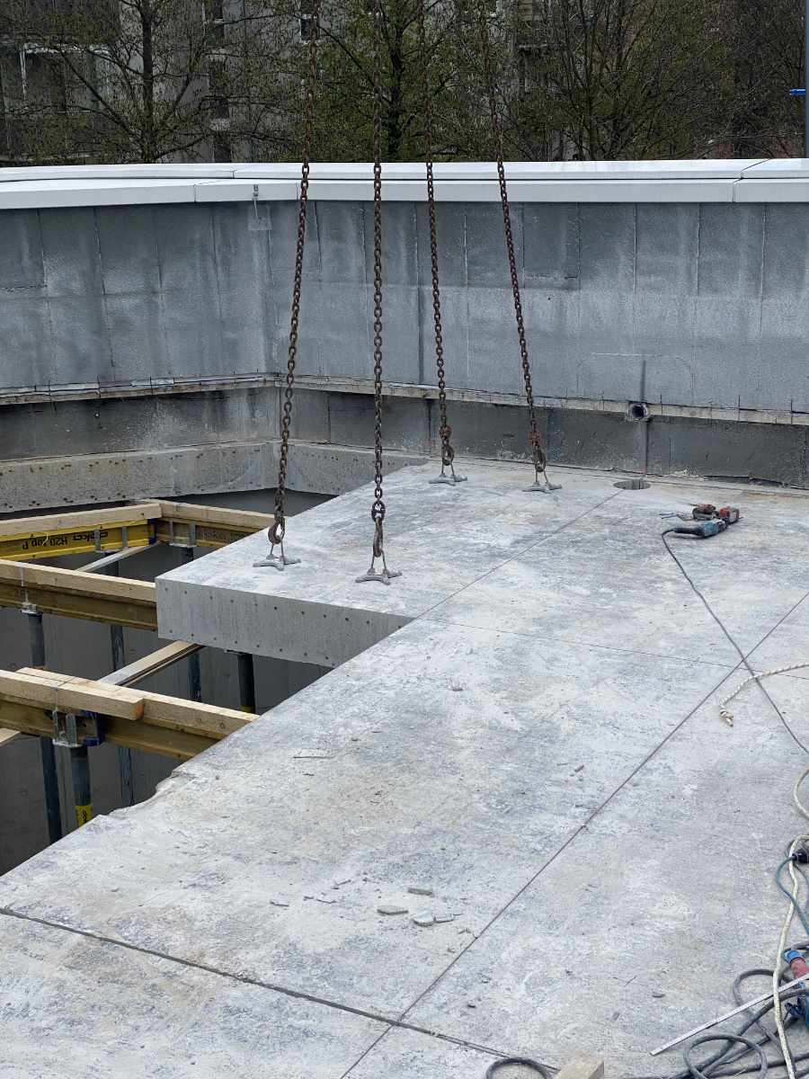 schonendes Herstellen einer Deckenöffnung in eine Stahlbetondecke mittels Diamantkernbohr- und Sägetechnik, unter teilweise sensiblen Bedingungen im Erdgeschoss. Der erhöhte Wasserschutz wurde unter anderem durch die Montage einer mehrlagigen Folien-Aufffangwanne gewähleistet.