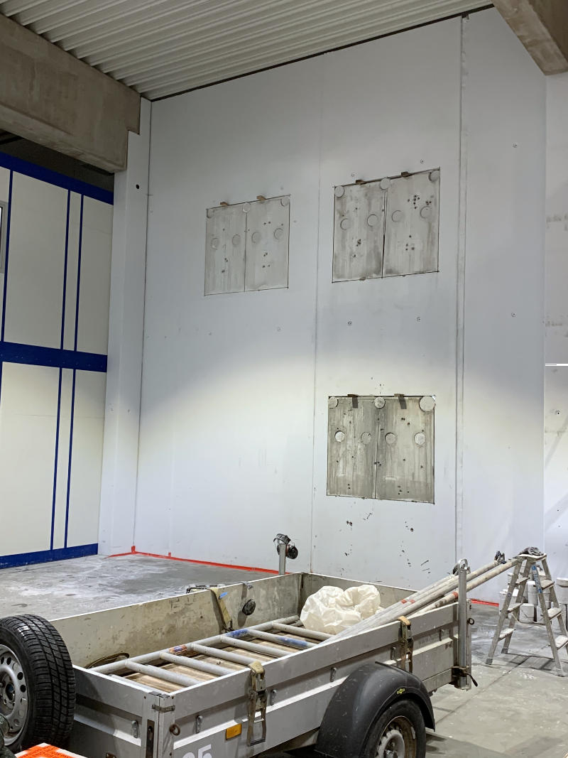Die Rohbauer kommen … Aber keine Angst! Um sicherzustellen, dass das Alltagsgeschäft des Lebensmitteleinzelhändlers ohne Einschränkungen fortgesetzt werden kann, wurde von uns mit effektiven Wasser- und Staubschutzmaßnahmen entsprechend vorgesorgt. Nachdem unsere Monteure die Schnittend-Kernbohrungen und Ausbau-Kernbohrungen hergestellt hatten, erfolgten die Sägeschnitte mit der Hilti Wandsäge DST 20 CA an den Außenseiten der geplanten Türöffnung. Dabei wurde der Beton präzise entlang der markierten Linien geschnitten. Die schienengeführte Sägeeinheit exakt von unseren erfahrenen Monteuren vorbereitet, geht unsere Säge durch das Bauteil wie ein Messer durch heiße Butter. Anschließend wurde das 3,2 to schwere Ausbau-Betonteil noch in vier 800 kg schwere Rückbauteile aufgesägt. Für den Ausbau und Abtransport der Betonteile setzten wir unseren neuen Weidemann-Teleskoplader ein. Anschließend folgte der Rückbau der Folien-Schutzmaßnahmen, der Arbeitsbereich wurde aufgeräumt und gereinigt. Gemäß dem Wunsch unseres Auftraggebers, wurde die entstandene Öffnung provisorisch mit Seekiefernplatten verschlossen.